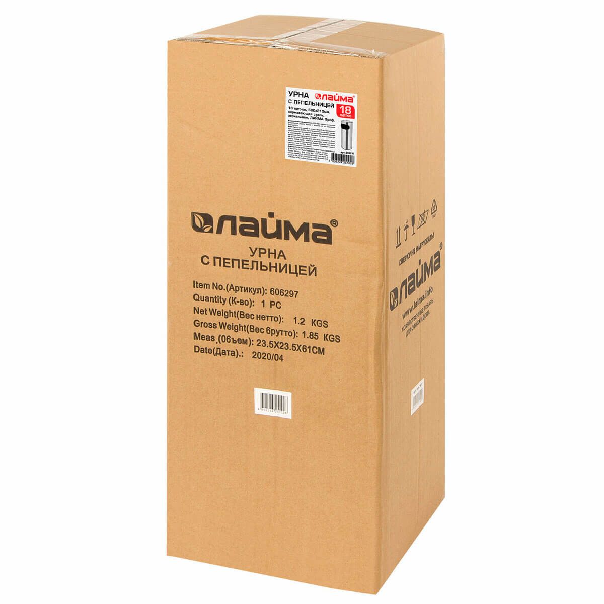 Урна с пепельницей 18 литров, нержавеющая сталь, зеркальная, LAIMA PROFESSIONAL в Оренбурге