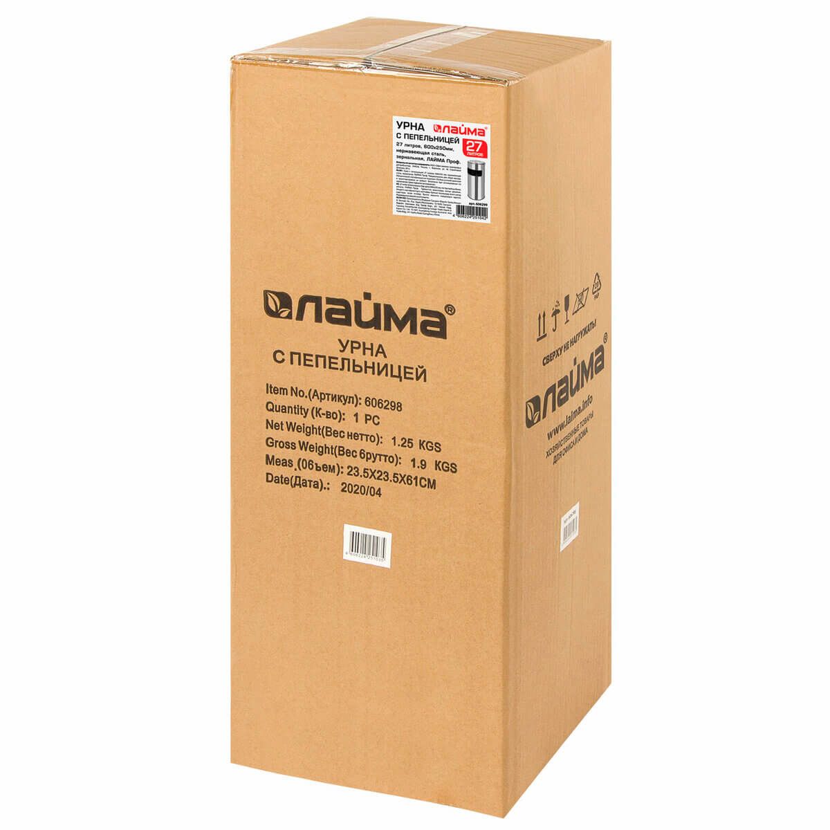 Урна с пепельницей 27 л, нержавеющая сталь, зеркальная, LAIMA PROFESSIONAL